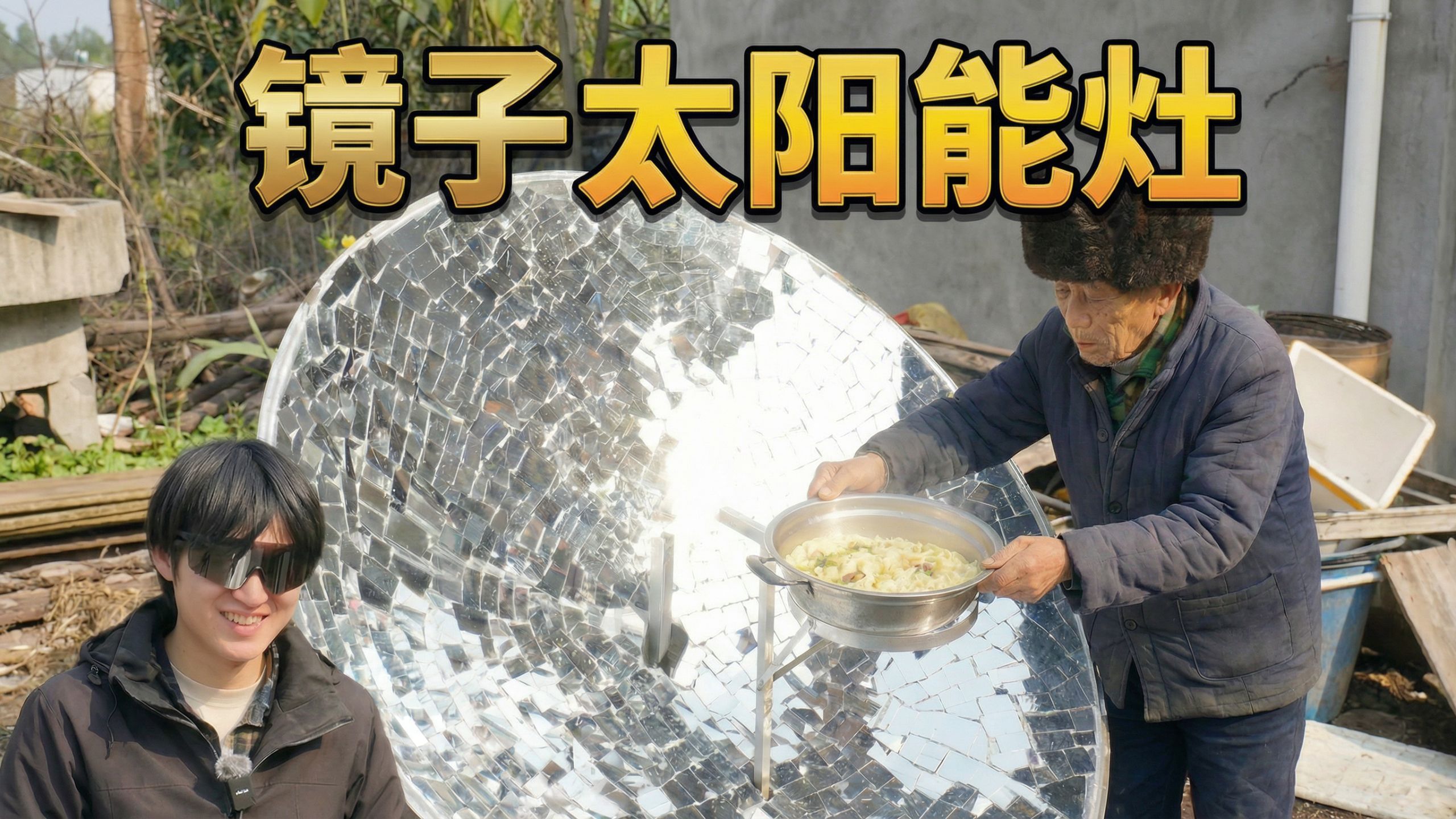 用镜子给爷爷做太阳能灶!