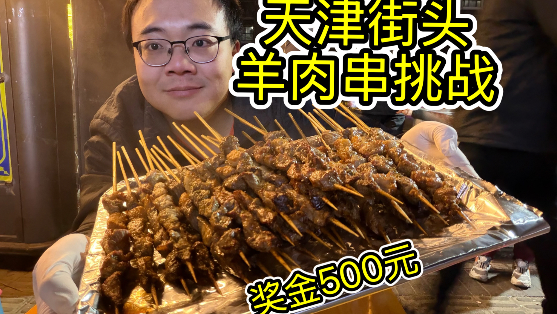 天津羊肉串挑战,4分钟吃30串奖金500元。严寒低温能成功吗
