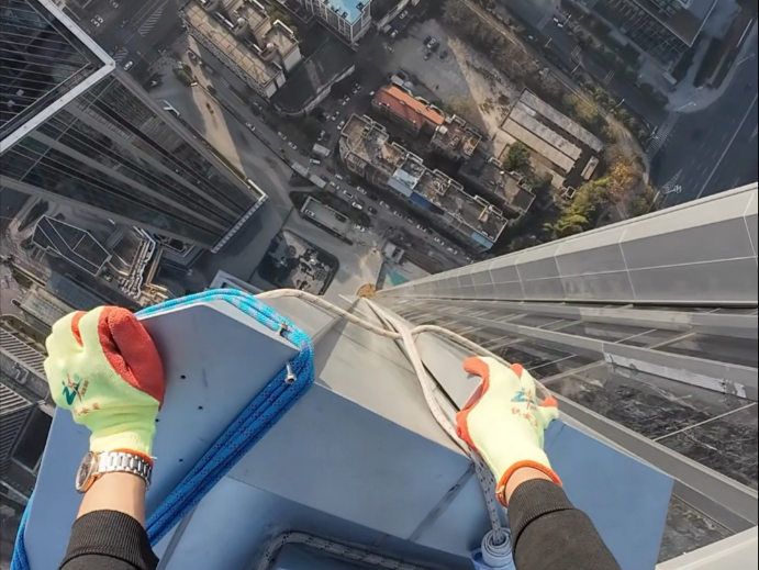 第一视角看蜘蛛人高空安装航空避障灯了。