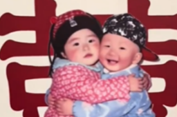 新人用小时候照片当订婚迎宾牌