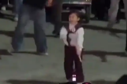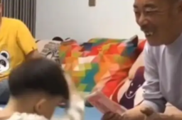男孩给爷爷拜年:爷爷跪下 我也有钱