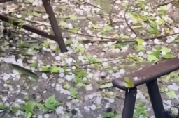 贵州一景区突降冰雹 如石头般大小