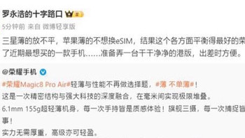 罗永浩:荣耀Magic8 Pro Air是近期最想买的手机