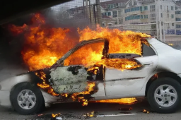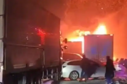 小车追尾大货车起火 被拖行进服务区