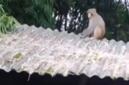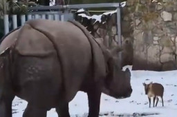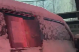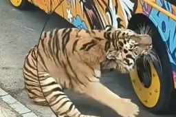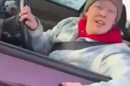 车主鸣笛驱赶拦路狗 结果车被狗拆了