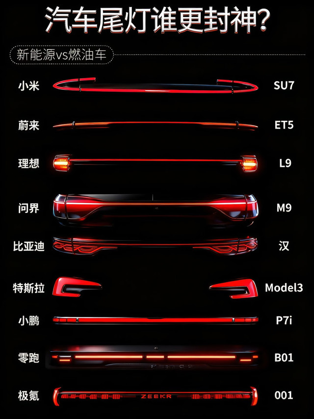 看了新能源和燃油车的尾灯对比,才发现连车灯都卷出了新高度!
